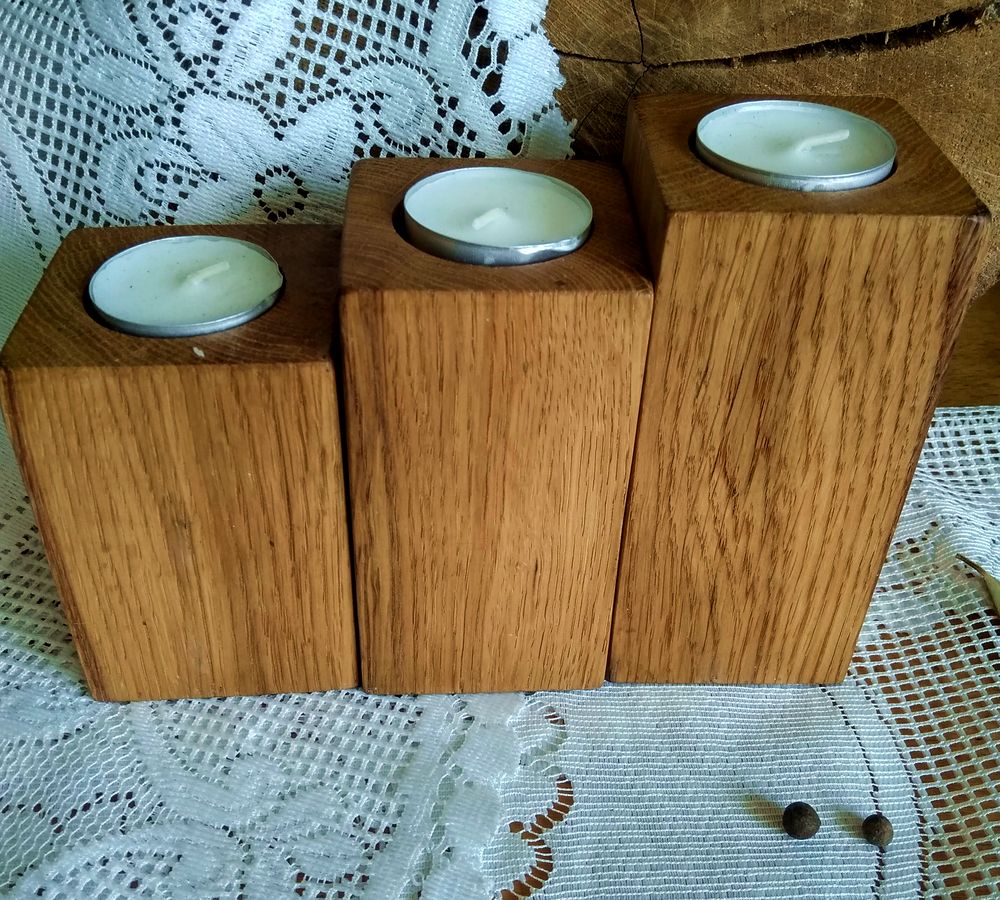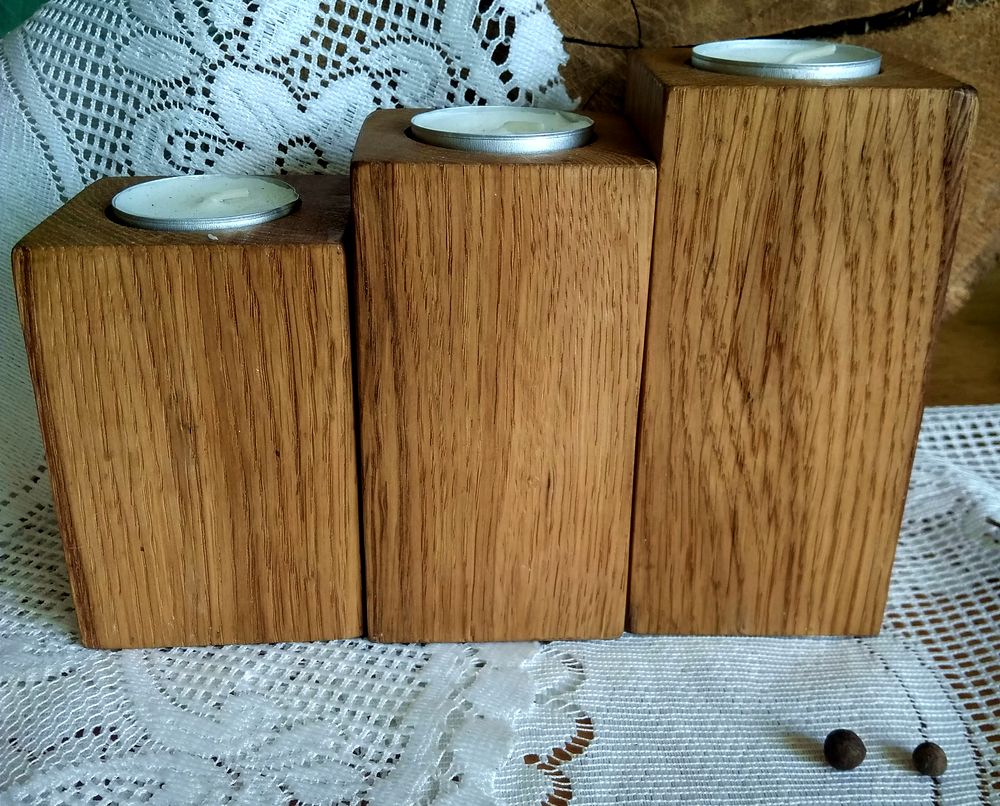 Подсвечники ручной работы выполнены из древесины хвойных пород дуба или берёзы, в технике декупаж в стиле прованс. Обработаны натуральной и экологически чистой пропиткой – маcловоском собственного производства или льняным маслом. Возможность приобрести подсвечники как набором так и поштучно.